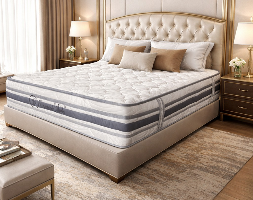 El colchón EMPERATORE PILLOW combina una estructura ortopédica de alta densidad con un elegante Pillow Top que brinda suavidad y confort premium. Su diseño robusto y su acabado de calidad lo convierten en una opción ideal para quienes buscan descanso de lujo con excelente soporte lumbar.