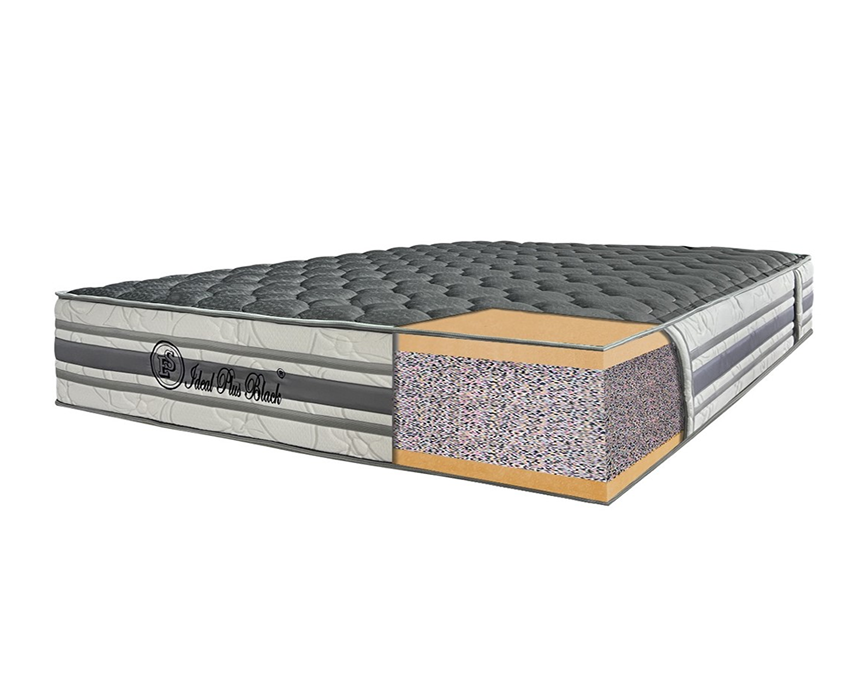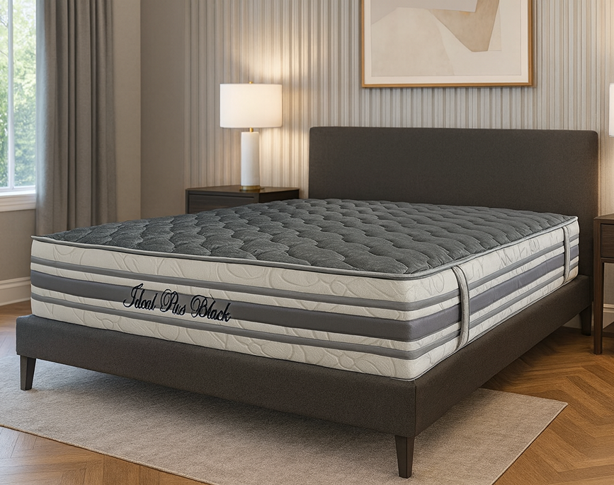 El colchón IDEAL PLUS BLACK ofrece un excelente equilibrio entre firmeza, confort y durabilidad, gracias a su núcleo en casata de alta densidad y su superficie acolchada. Es ideal para quienes buscan un descanso diario confortable con un diseño sobrio y funcional.