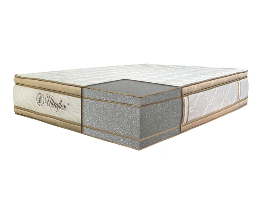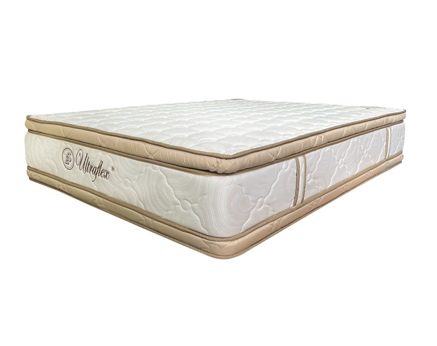 El colchón ULTRAFLEX PILLOW ofrece una combinación perfecta entre firmeza y suavidad, gracias a su núcleo y su superficie Pillow Top acolchada. Es ideal para quienes buscan un descanso placentero y ergonómico para uso diario intensivo.